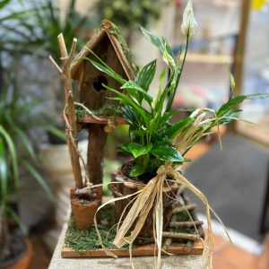 Casita de madera con planta